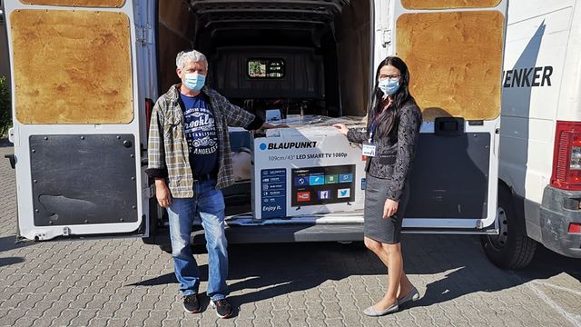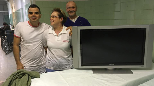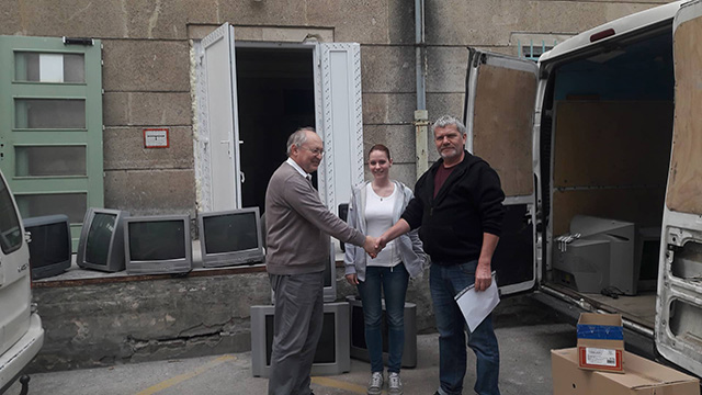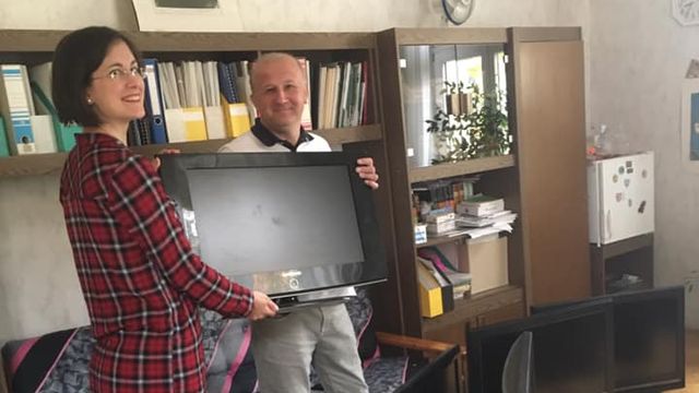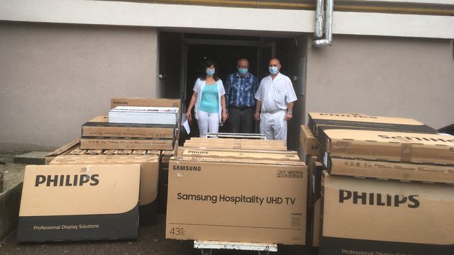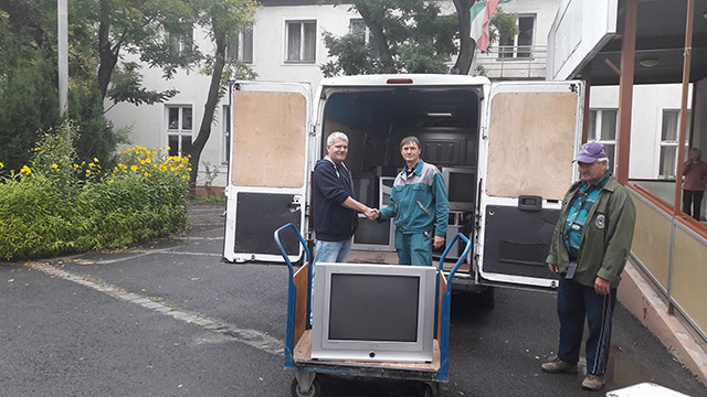 2016-ban 54db tv készülék átadása, Böjte Csaba testvérnek erdélyben