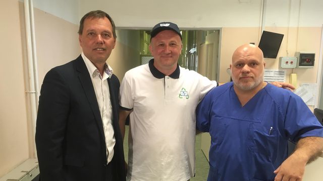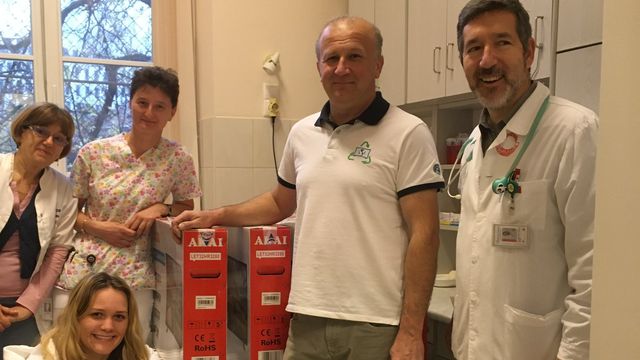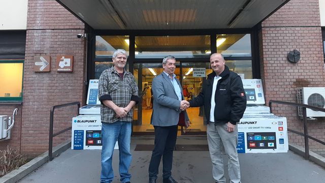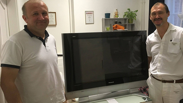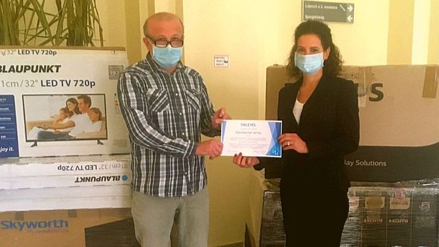 Honvéd Kórház pacemaker részleg vezetője, Duray Gábor főorvos Úr, 2db LCD tv-ét vesz át