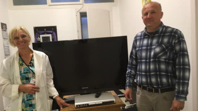 Kistarcsa Flór Ferenc Kórház ápolási igazgatója 12db LCD tv-ét vesz át. Az átadás a Flavorchem Europe támogatásával jött létre.