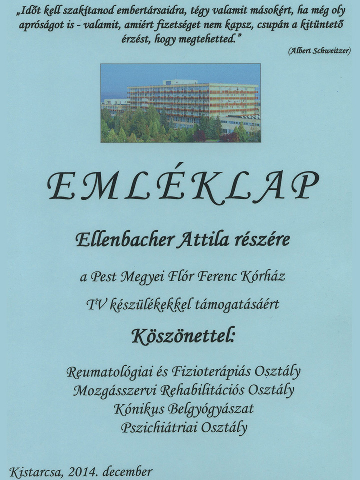 Kistarcsa, Flór Ferenc Kórház köszönőlevél