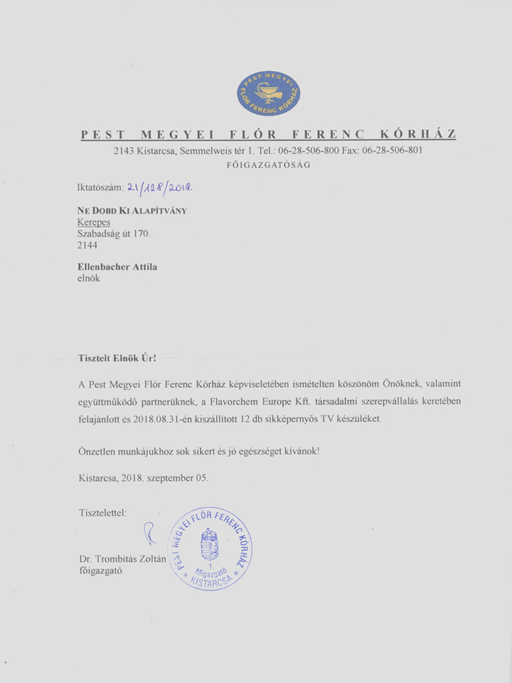 Jahn Ferenc Kórház köszönőlevél