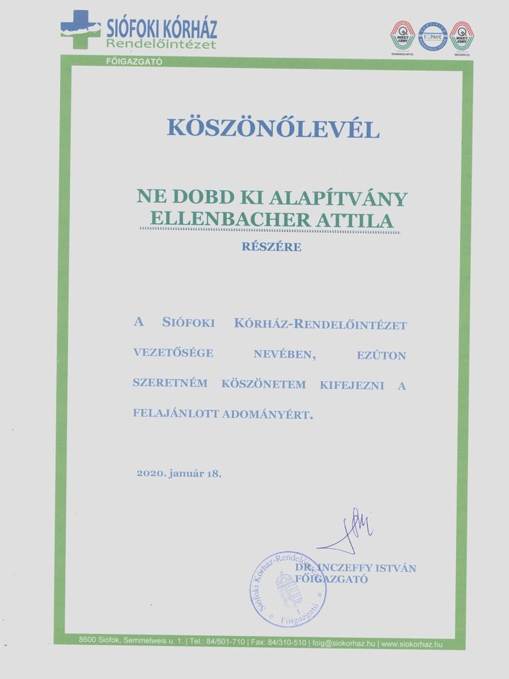 Siófoki Kórház köszönőlevél